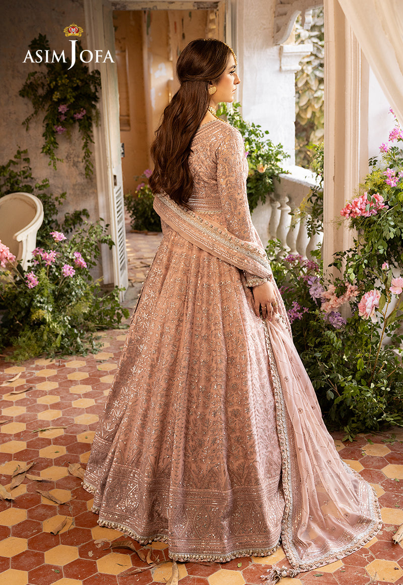 Let the Pink Serenade of Dreams enchant your senses with this tea pink peshwas—a luxurious masterpiece from Asim Jofa's "Khwab-E-Naubahar." The luxurious vibe, brought to life with threadwork and silver cupped sequins, is a serenade of dreams. Embroidered panels on chiffon, adorned with small and big borders, narrate a tale of grandeur. The embroidered sleeves and bodice with borders, add layers to the dream. Wrap yourself in the embroidered dupatta and let the serenade of dreams unfold—a dreamy journey in shades of tea pink.