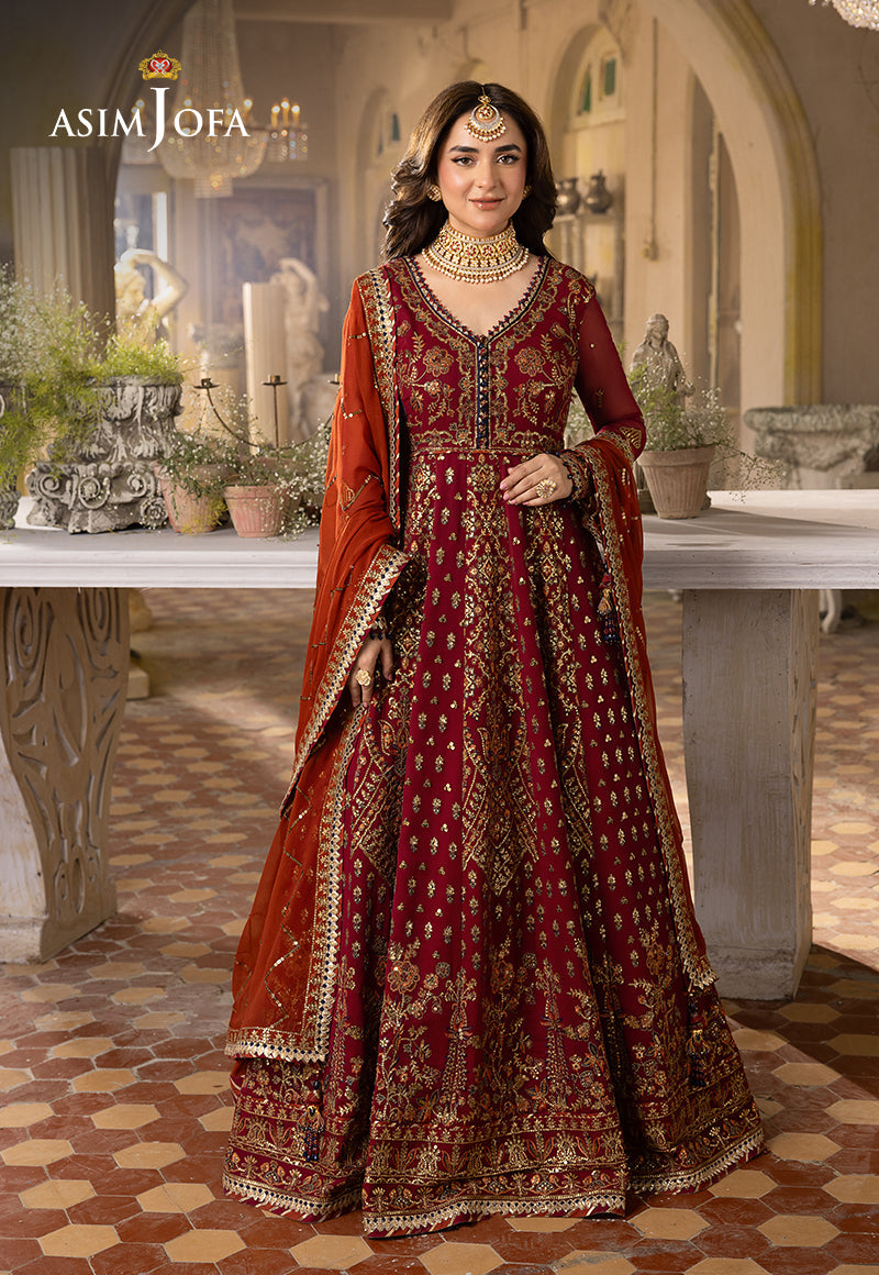 Experience a Rouge Rhapsody in Bloom with this captivating red peshwas, a floral masterpiece from "Khwab-E-Naubahar." Antique gold zari, maroon, navy blue, and rust threadwork adorned with 5mm sequins and 3mm spangles blossom across the bodice creating a rhapsody of Indian blooms. The embroidered kalis are a garden in full bloom and the ghera's embroidered border is a celebration of nature's grandeur. As you drape the rust-hued dupatta, adorned with four side borders, you become the queen of a poetic rhapsody—a garden of dreams in shades of rouge.