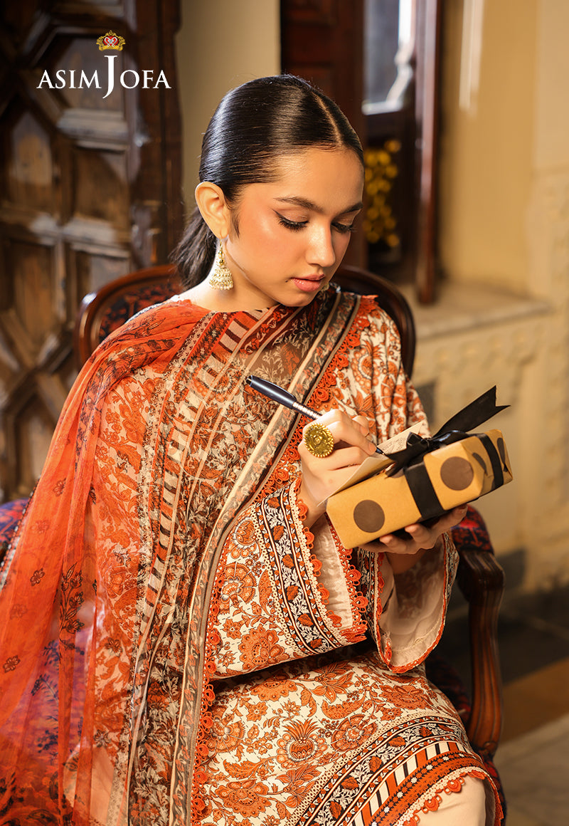 A celebration of vibrant hues, this orange ensemble features an all-over print that captures the essence of playful sophistication. The digitally printed chiffon dupatta mirrors the shirt’s intricate design, enhancing the outfit’s fluidity and making it a striking choice for any occasion.