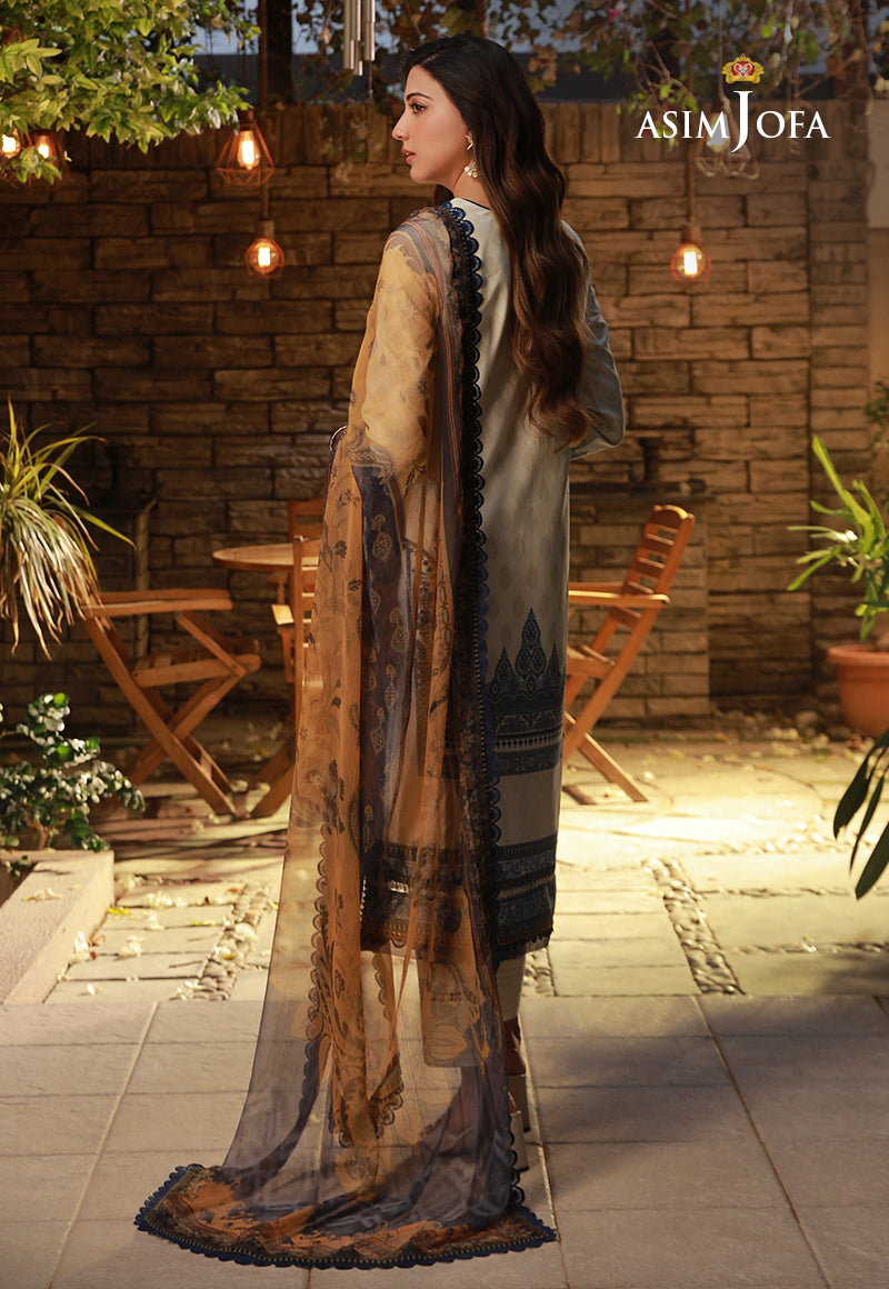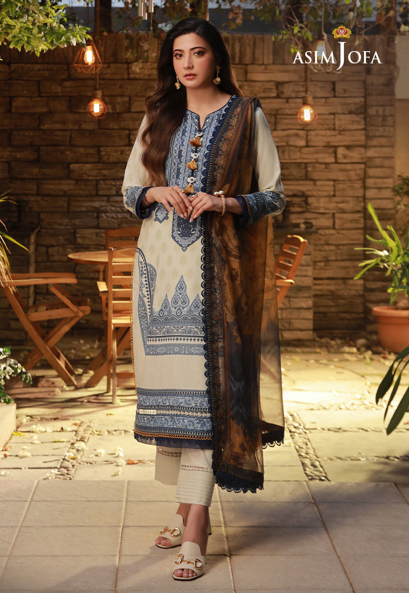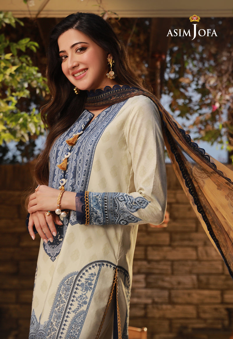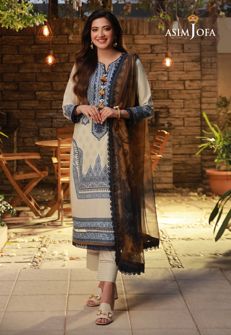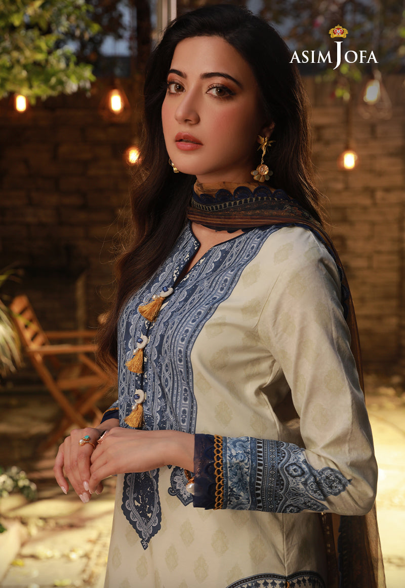 Become a serenade of sophistication with the ASRA collection, graced by the enchanting Aymen Saleem. This ensemble, woven from the essence of ivory and aqua blue, is a sonnet of style. The shirt is imbued with elegance, its patterns flowing like verses of timeless allure. Draped in the chiffon dupatta, reminiscent of dreams painted by dawn, this ensemble lets you embody the essence of an aqua serenade.