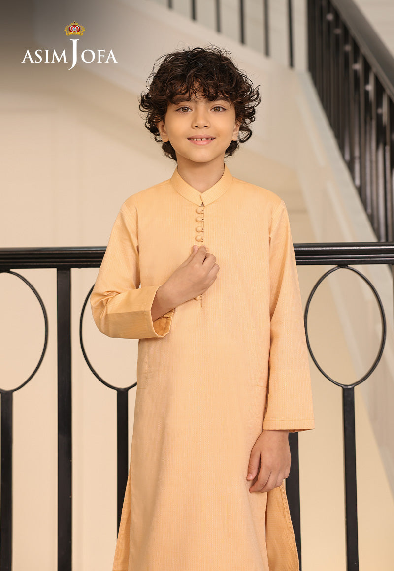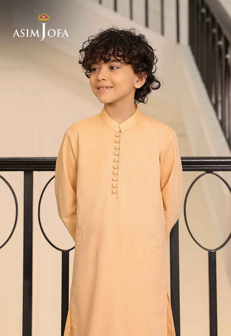 For a touch of festive charm, this peach kurta is a stunning addition. The intricate loops and ball buttons on the front provide a flawless detail that enhances its overall appeal.